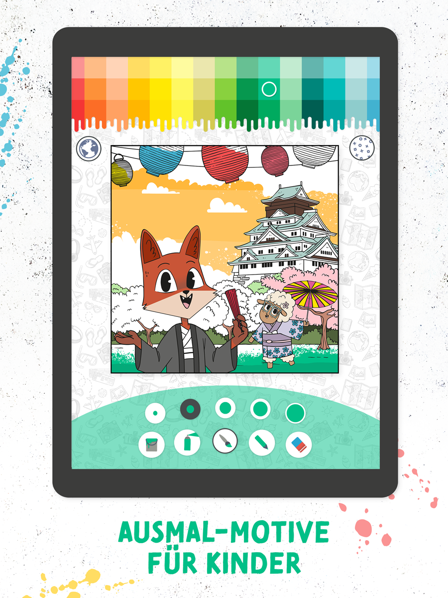 In der Malbuch-App „Ausmalen mit Fuchs und Schaf“ können sich Kinder mit zahlreichen Pinseln, Farben und Mustern kreativ austoben. Fehler können leicht verbessert werden, Frustrationserlebnisse werden vermieden. So haben Kinder keine Angst oder Hemmungen, legen direkt los und probieren sich künstlerisch aus.